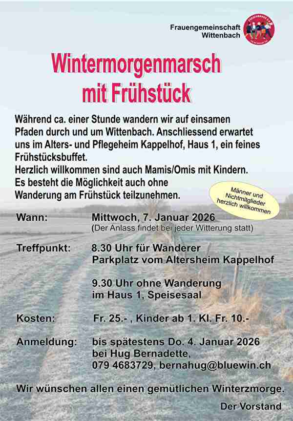 Es besteht die Möglichkeit auch ohne Wanderung am Frühstück teilzunehmen.